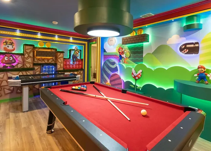 Tijdens hun verblijf in deze gesitueerde in Orlando Luxury Villa- 10Br W Led Pool Windsor Cay Orlando kunnen gasten genieten van een bubbelbad of een bezoek brengen aan het Showcase of Citrus, op 6 km afstand. Dit vakantiehuis ligt binnen 10 minuten rijden van Lake Austin en biedt wifi en gratis priveparkeerplaatsen.